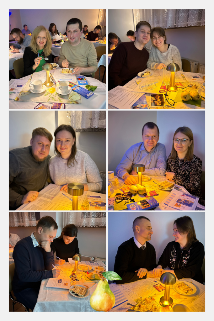 W niedzielę 19 stycznia 2025 roku przy parafii pw. św. Jana Chrzciciela w Parczewie odbyła się druga randka dla małżeństw z serii GRUSZKOWE love. Zgromadziła ona 13 par, które pogłębiły temat: „Czas na wagę złota”. Spotkanie rozpoczęło się o godzinie 15:00 Koronką do Miłosierdzia Bożego, którą poprowadził ks. Karol Zadrożniak, pobłogosławił zebranym na wspólny czas ze sobą. Prowadzący warsztaty – Anna i Tomasz Stephan, małżeństwo z 18-letnim stażem przeprowadzili zebranych przez zagadnienia zarządzania czasem, który jest darem Boga dla każdego z nas. Wskazali, że warto każdy dzień przeżywać w kategorii jedynego, takiego, który już się nie powtórzy. Nie zabrakło pracy własnej nad wartościami, podziałem godzinowym doby a także wskazaniem planów na najbliższy rok i skonsultowaniem ich ze współmałżonkiem. Każda z par miała oddzielny stolik – panował nastrój kawiarniany, a po oficjalnym zakończeniu randki nikomu nie spieszyło się do domu. Kolejne GRUSZKOWE love w Parczewie w marcu. Po szczegóły zapraszamy na stronę internetową www.wybieramrodzine.pl