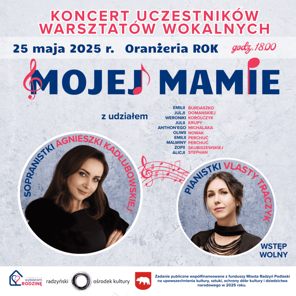 - Koncert finałowy uczestników warsztatów – 25 maja 2025 r. w Radzyńskim Ośrodku Kultury, godzina 18:30.