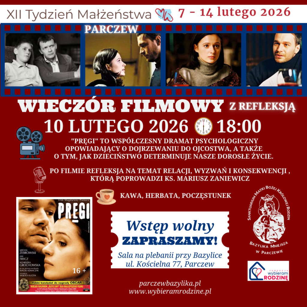 Parafia św. Jana Chrzciciela w Parczewie oraz Fundacja Wybieram Rodzinę zapraszają na wieczór filmowy połączony z refleksją i rozmową.