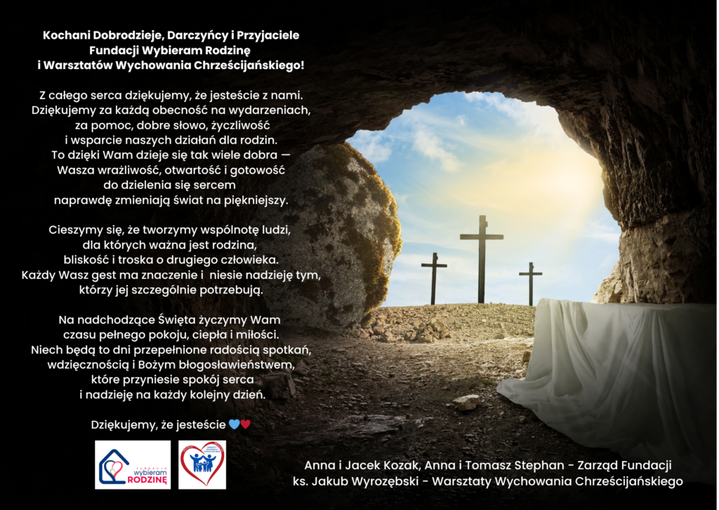 Wielkanoc 2026 Ania Stephan 1 kwietnia, 2026 Uncategorized Nawigacja wpisu Poprzedni Poprzedni wpis: Szkoła Dialogu w PARCZEWIENastępny Następny wpis: Rekolekcje dla kobiet Pratulin 29-31 maja 2026
